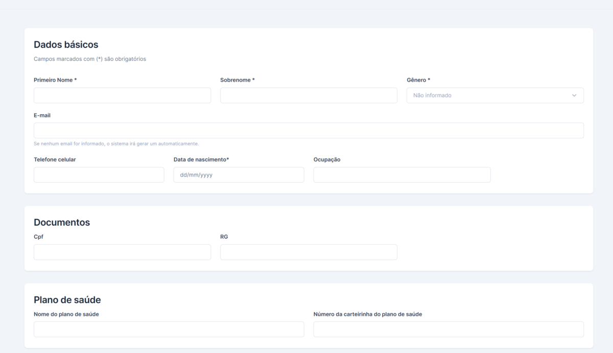 O campo e-mail não é obrigatório, porém ao preencher o seu cliente terá acesso a aplicação e poderá interagir com você via aplicativo. Se não for preenchido o sistema irá gerar um genérico, porém o cliente não receberá acesso.