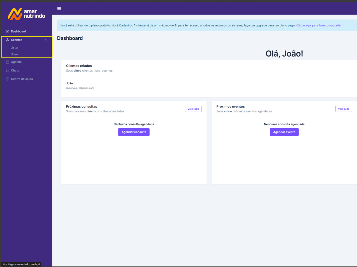 Perfeito, agora você tem seu primeiro cliente cadastrado!